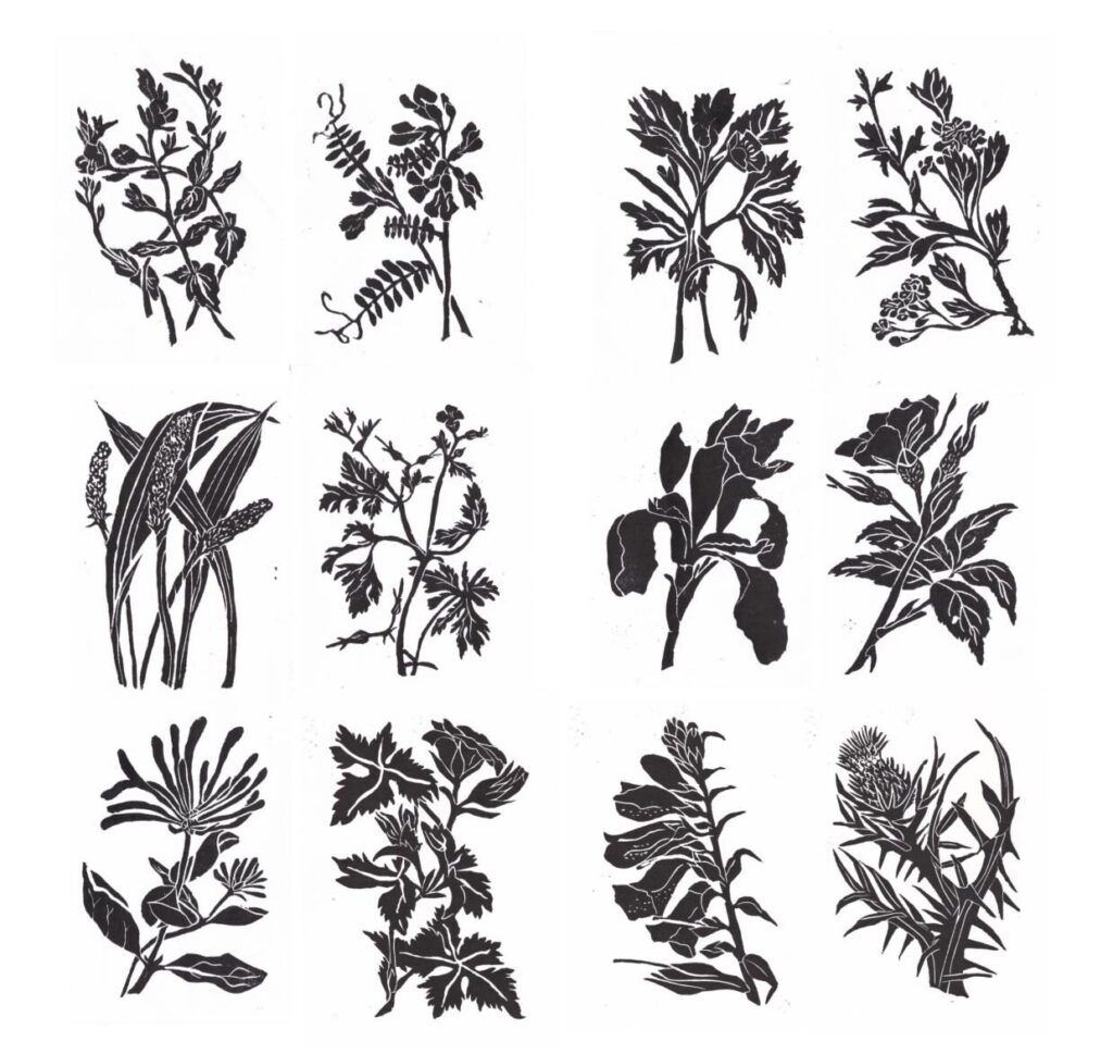 Lockdown was a time for staying home and taking walks, usually alone. Every day during this period I collected samples of plants from the garden and hedgerows to create a series of lino cut prints. The series spanned about 8 months, from the earliest primroses of spring to the thistles of mid summer. It became a chronology of the Somerset hedgerow and was subsequently shown in the Museum of Rural Life in Glastonbury. Tucked away in a box in my studio is the full collection of sketrches, prints and lino cuts. A selection of these prints are for sale.
